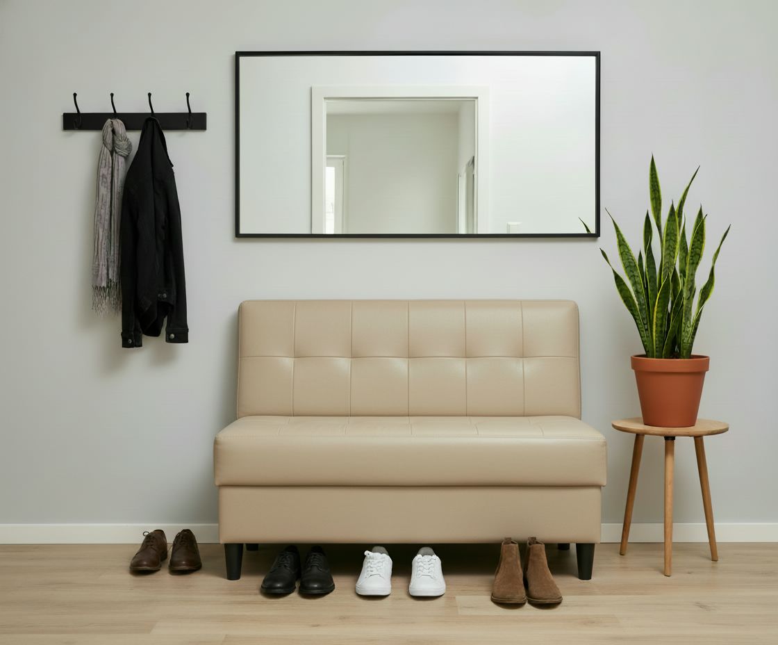 Универсальный прямой диван - компактная мебель, которая подойдет для любой комнаты! Благодаря малогабаритным размерам он поместится даже в небольшое помещение и позволит вам организовать место для сидения абсолютно в любой зоне. Диванчик выполнен из экокожи. Это новый на рынке материал, который стремительно набирает популярность за счет объединения качеств двух тканей. Пуфик мягкий и износостойкий, не выцветает под прямыми солнечными лучами и устойчив к повреждениям. Двухместный минидиван оснащен ящиком для хранения обуви - его удобно поставить в прихожей и коридоре вместо стандартной обувницы, чтобы совместить 2 в 1. Также мини диван будет полезен на балконе и лоджии, подойдет для кухни. Удобное сидение пуфа делает его идеальным приобретением для зоны ожидания в офисе, гостинице или салоне красоты. Небольшая напольная банкетка будет уместна и на даче - вы можете поставить ее вместо лавочки или скамейки и наслаждаться отдыхом на природе с максимальным комфортом! Нераскладное кресло с легкостью впишется в любой интерьер дома, дачную или офисную обстановку.